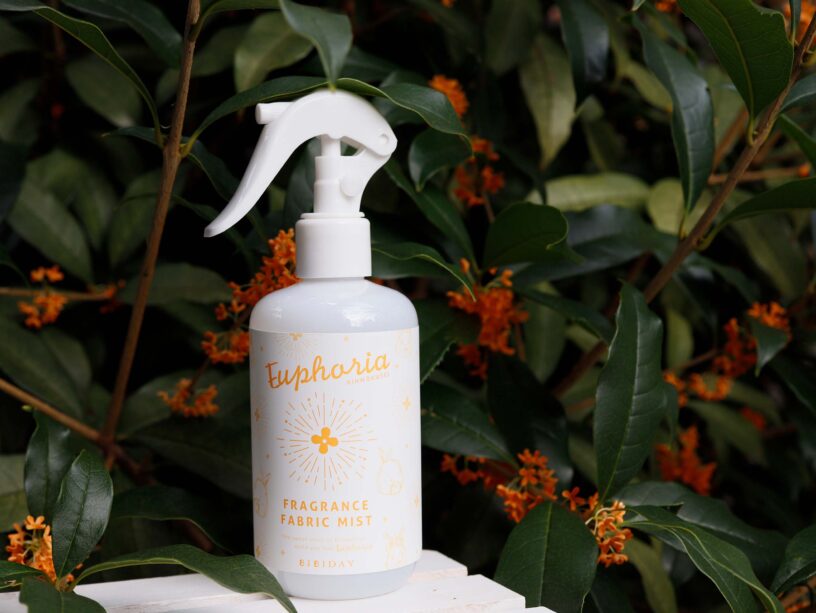 ファブリックミストは布製品にスプレーするだけで、簡単に好きな香りを楽しむことができるフレグランスアイテムです。BIBIDAYのユーフォリア・キンモクセイファブリックミストは、1本で4役の優れもの。