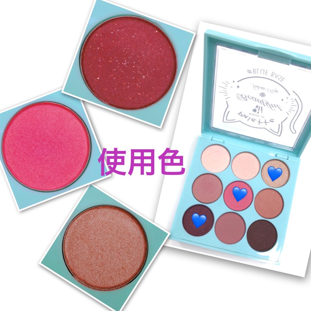 今回使ったアイシャドウパレットは中国製ではありますが、日本人向け(日本のトレンドカラー)で、イエベ・ブルベのパーソナルカラーに合わせた色合いです。でも中国コスメ特有の発色の良さは健在でございます!