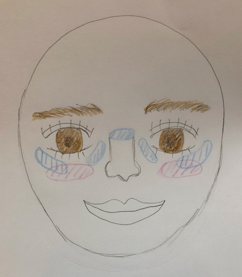 チークを乗せる場所はお好みで、ルミナイザーはイラストの水色の部分に付けると立体感のある艶肌に仕上がります💓艶って大事らしいです。マット肌よりも若く見え、肌も綺麗に見えます。韓国の女優さんやアイドルもみんな艶肌ですよね!