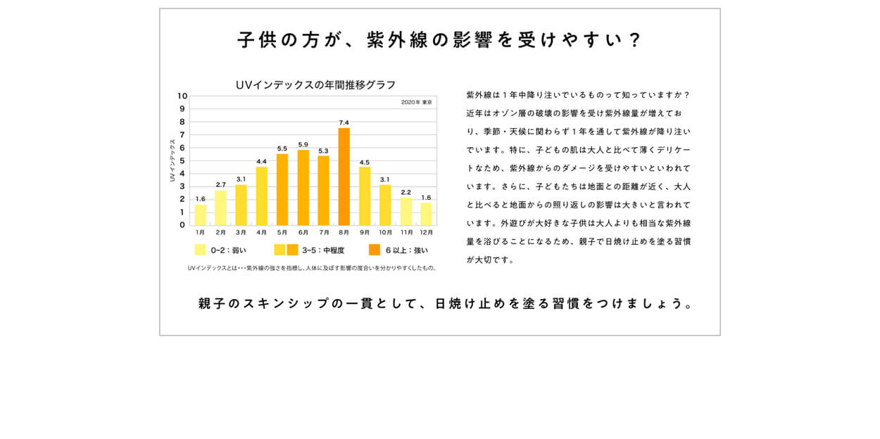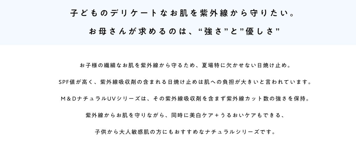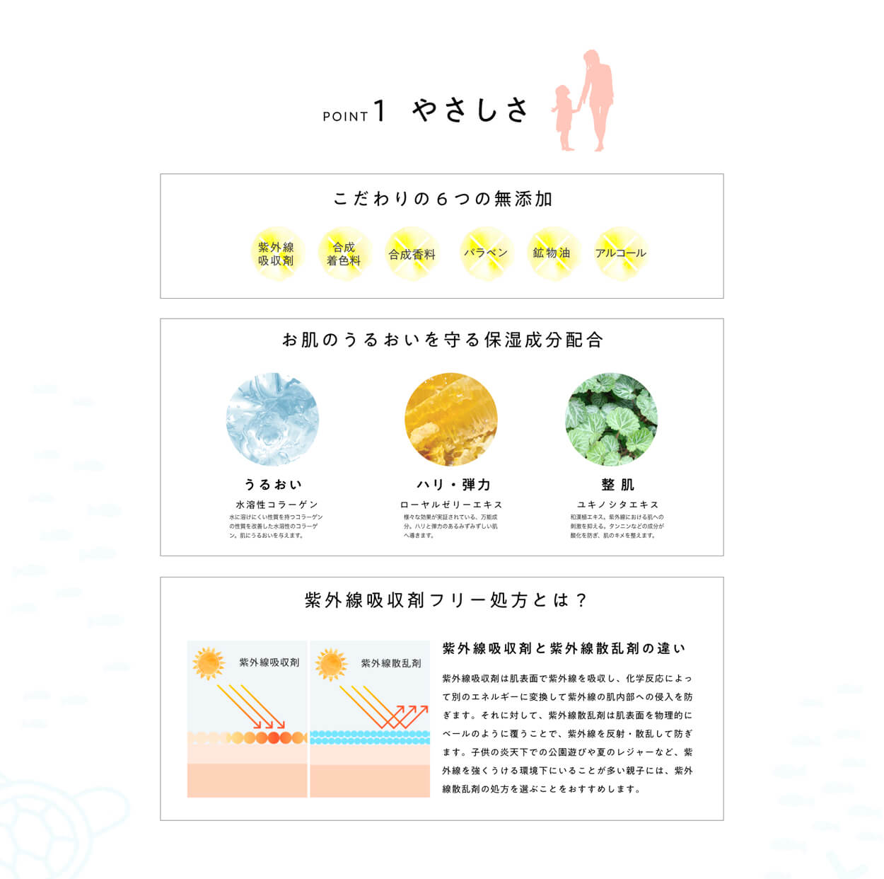 ●紫外線散乱剤使用のため、お子さまの柔らかい肌にも優しくお使いいただけます。