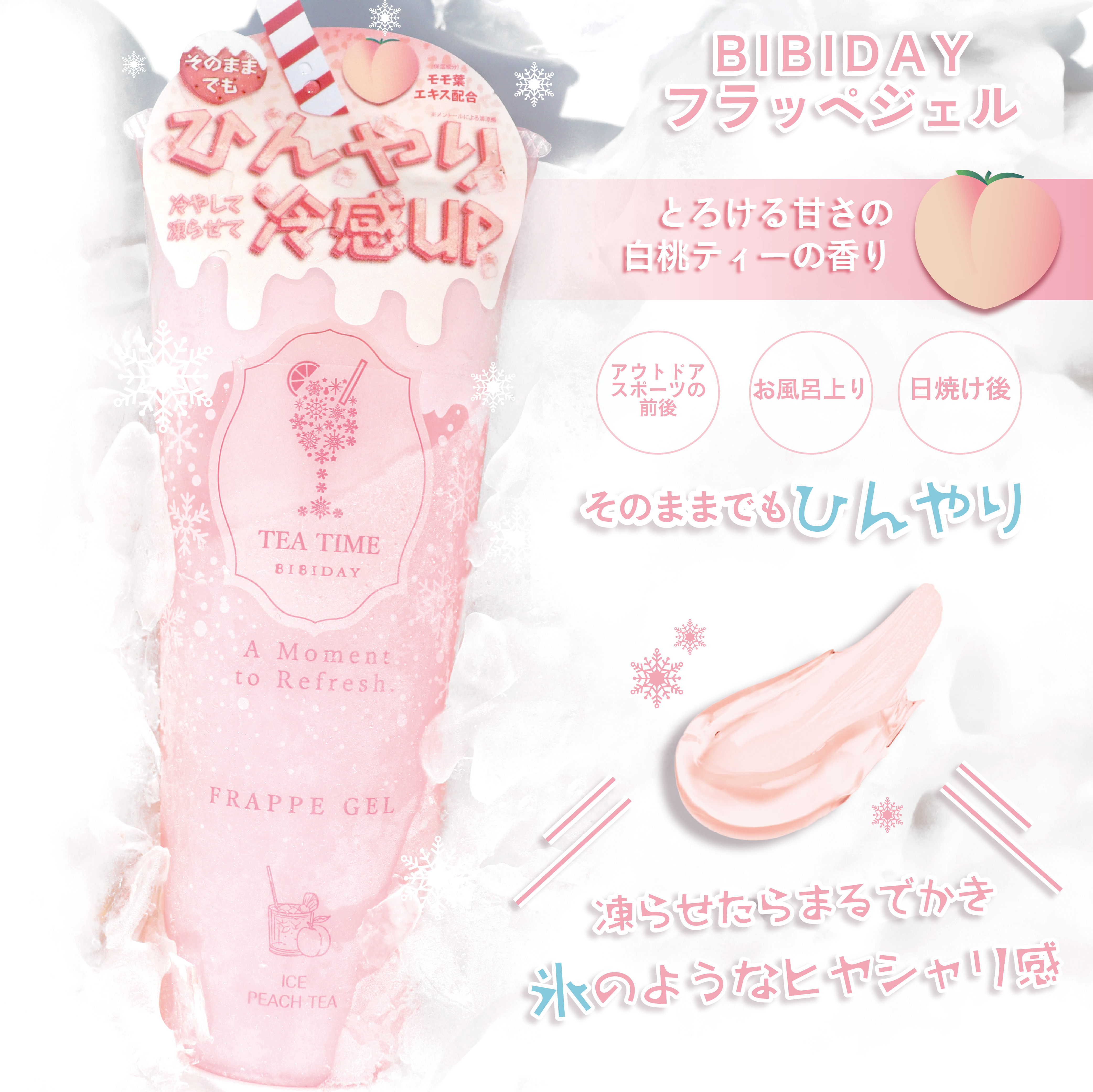 フレッシュなフルーツティーの香りで、いつでもティータイム気分が味わえる冷感ボディジェル。肌なじみが良く、軽やかで伸ばしやすいぷるぷるジェルが特徴です。べたつかないさらっとしたテクスチャーで、じっとりした夏の暑さ対策に最適!