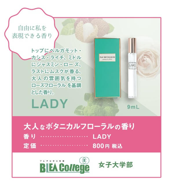 トップにベルガモット・カシス・ライチ、ミドルにジャスミン・ローズ、ラストにムスクが香る、大人の雰囲気を持つローズフローラルを基調とした香り。