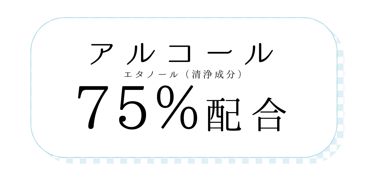 70~80%濃度エタノールは、他の濃度に比べ 内部への浸透性が強く、最も強い殺菌性があ ると確かめられています。また、液体よりも アルコールが蒸発しにくいジェルタイプのた め、効果の持続も期待できます。