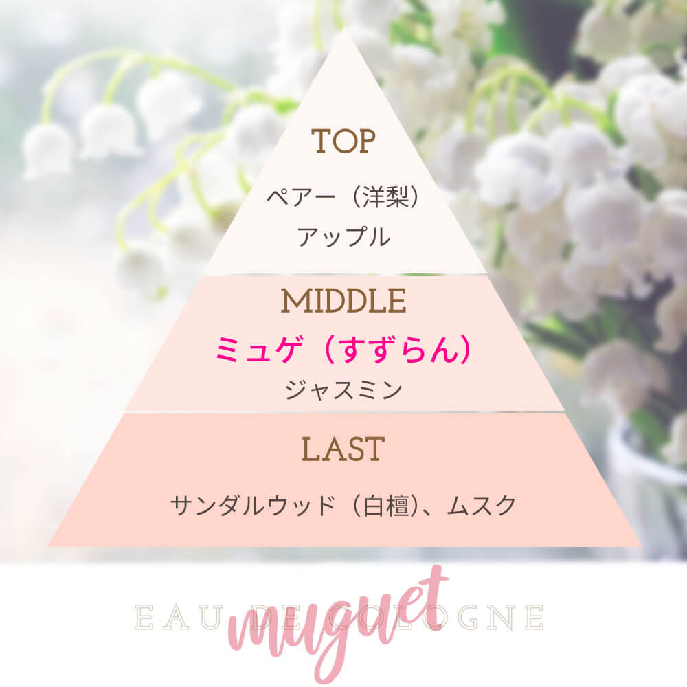 ミュゲ・アクア・ナチュラルリンク、それぞれ思いの込められた香りが優しく包み込んでくれます。